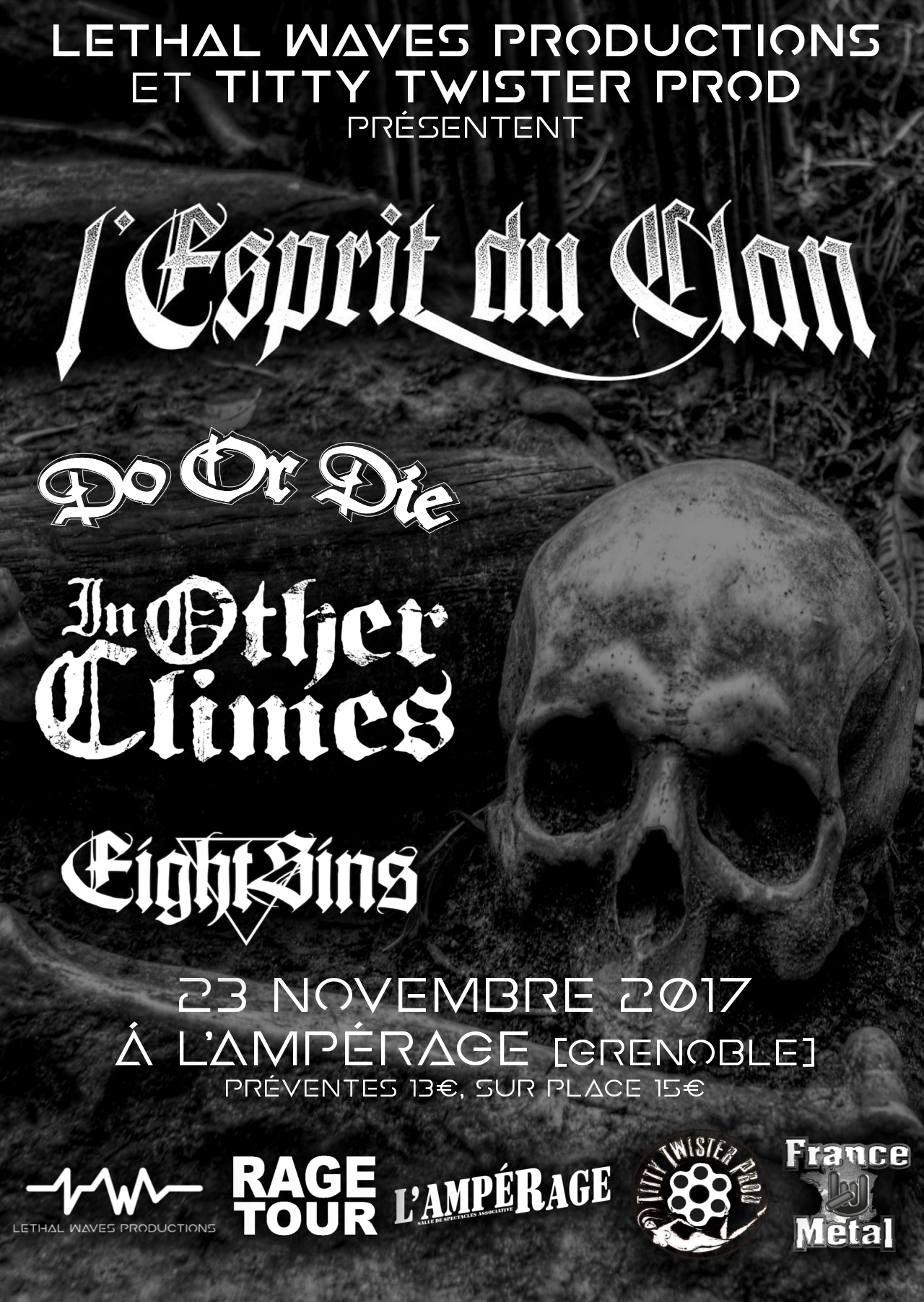 Lethal Waves Productions, une association basée à Grenoble, m'a sollicité pour concevoir leur identité visuelle. J'ai réalisé leur logo, capturant l'essence de leur mission artistique, et j'ai également contribué à la création de plusieurs affiches promotionnelles pour leurs soirées concerts. Ces supports visuels avaient pour objectif de refléter l'énergie et l'ambiance des événements tout en renforçant l'image de marque de l'association.